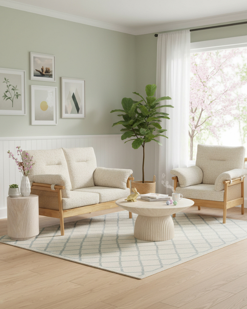 Seoul Rattan Chair with Boucle Latte
