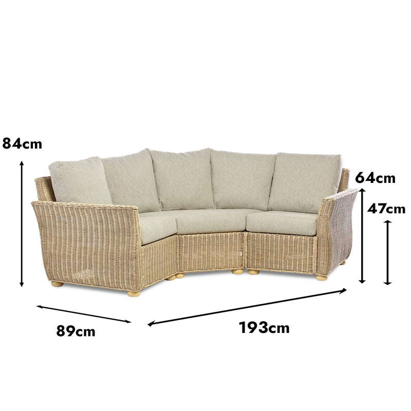 Desser offers a variety of curved or right-angled corner sofas, allowing you to select the correct size to fit in to your conservatory, orangery or living room. Hand-crafted from natural rattan, our furniture pieces offer a stunning wicker weave design with matching modular pieces able to add for an even bigger sofa.