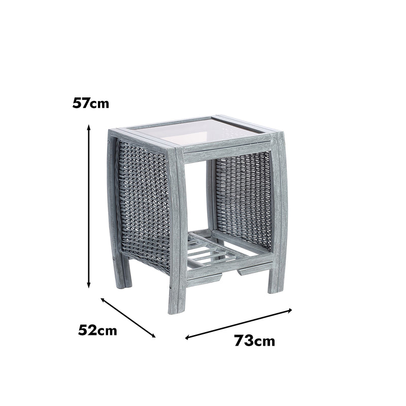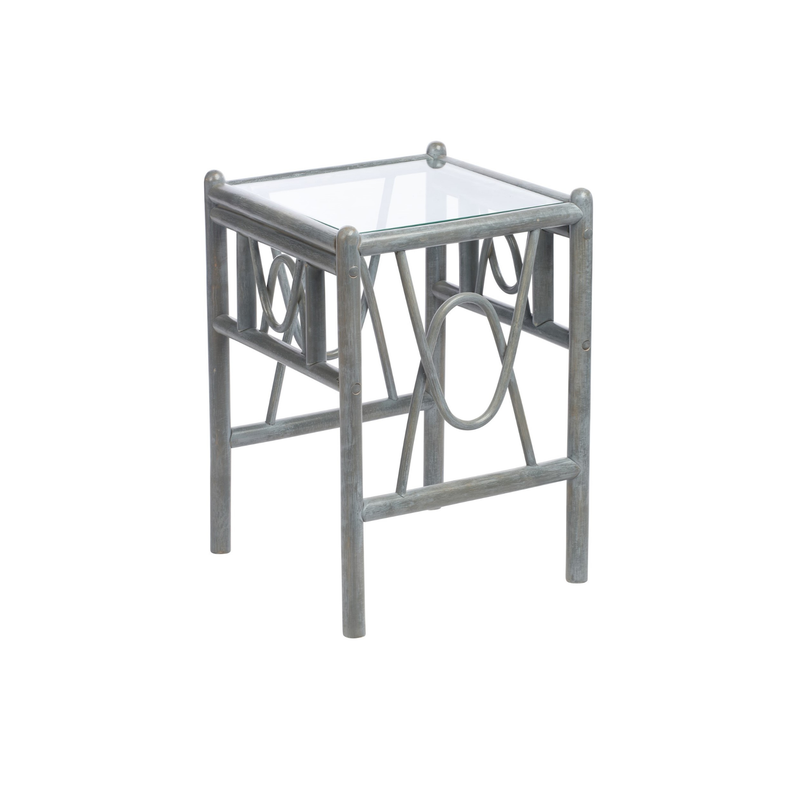 Madrid Grey Lamp Table - Handcrafted Cane & Glass