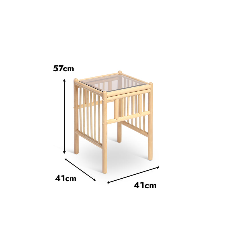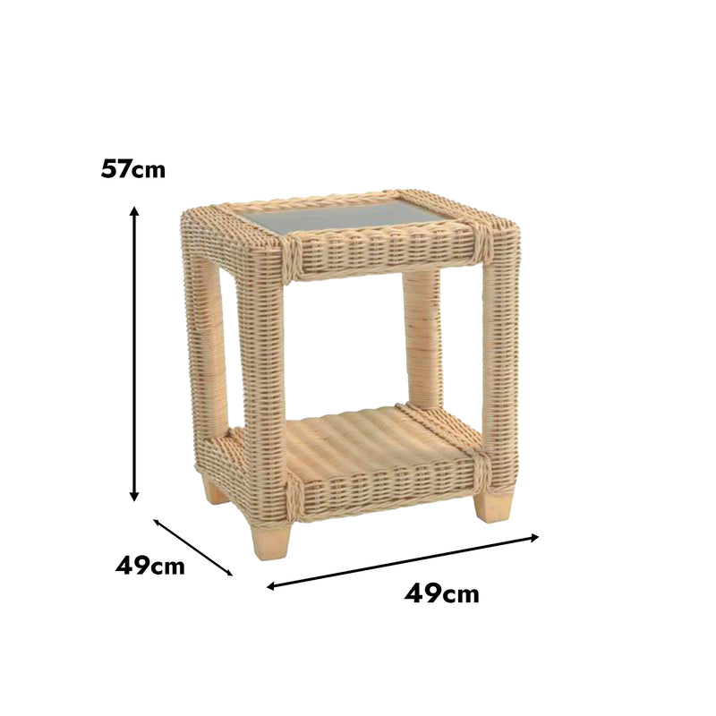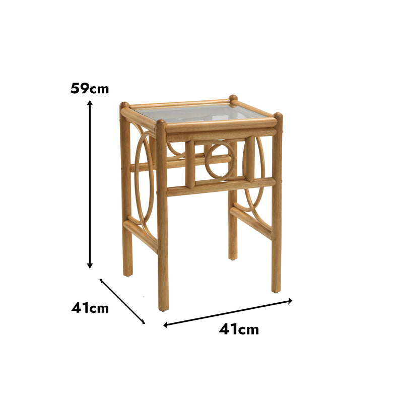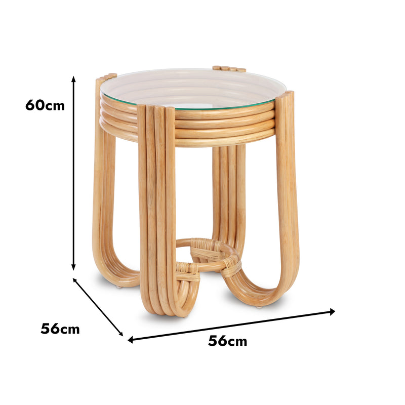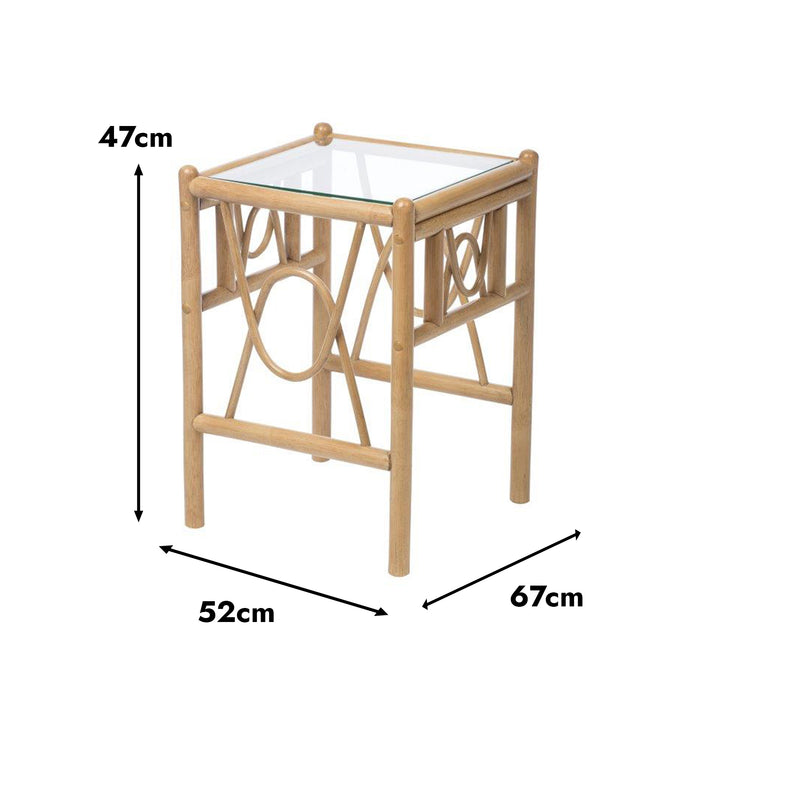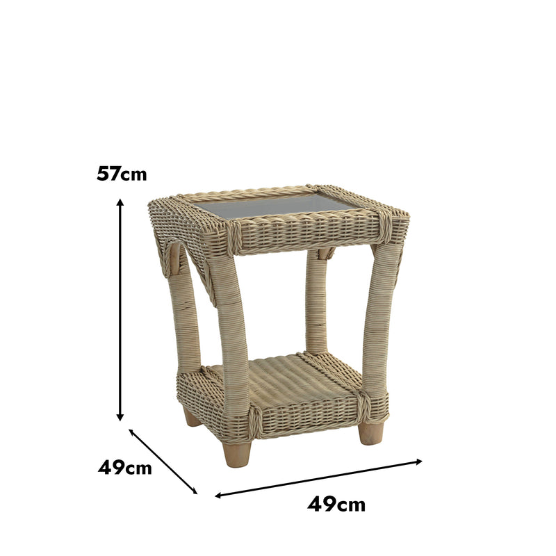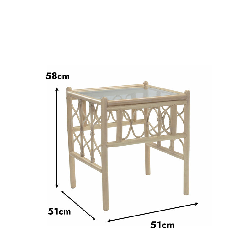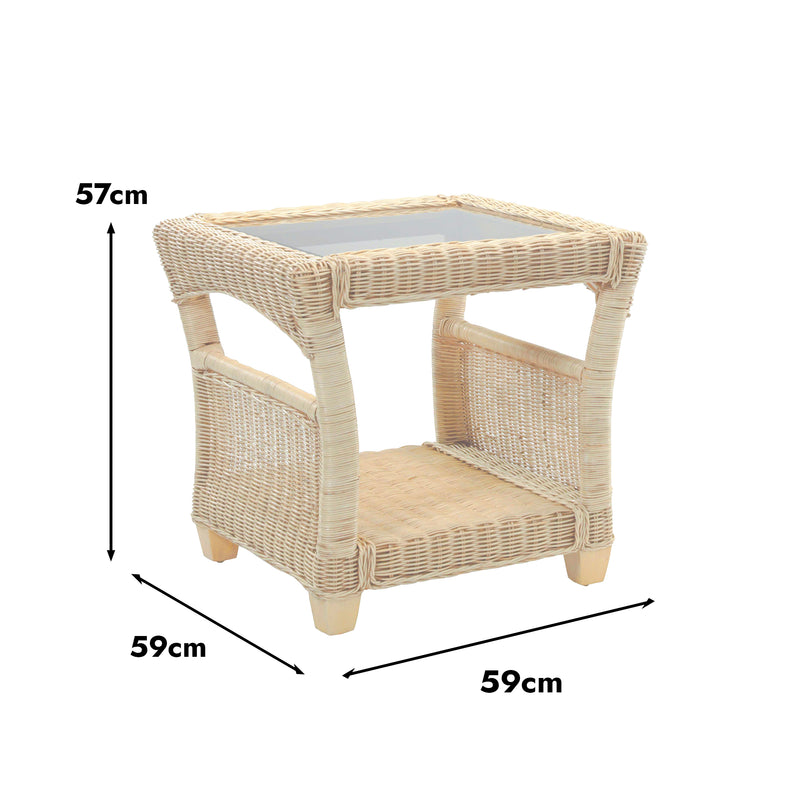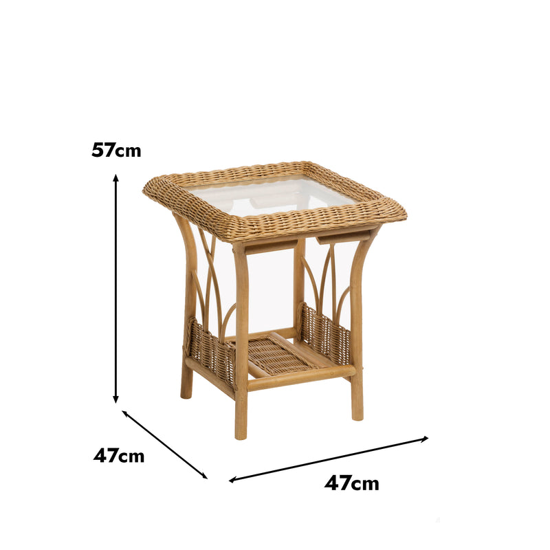 Morley Handcrafted Rattan Lamp Table with Glass Top