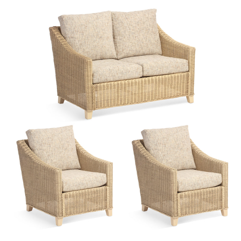 Dijon Natural Rattan 2 Seater Sofa 3pc Suite