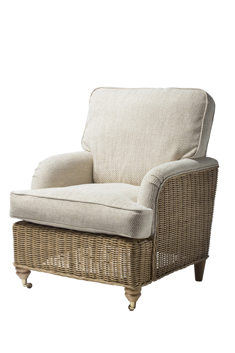 Our Seville conservatory furniture set has fully upholstered back and base cushions and arms giving you the utmost comfort. The fine light-oak weave of the wicker makes for a very elegant suite with the traditional castor feet adding a timeless finish to the look. This suite would look superb in a living room or conservatory, with the finishing touch being added by the fabric chosen to suit your style.