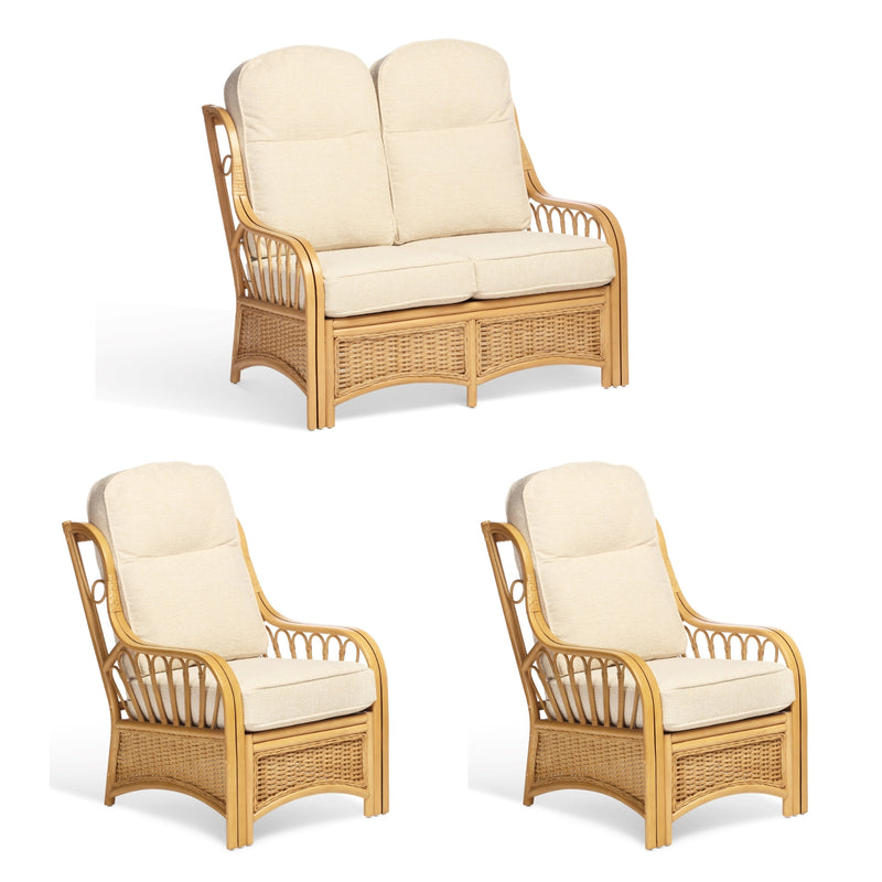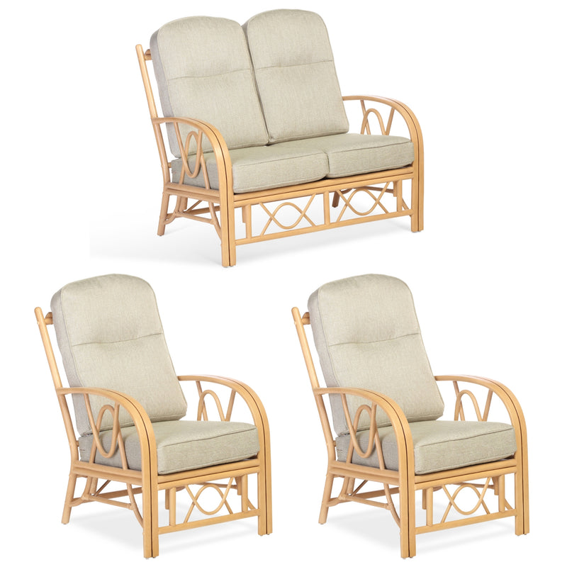Vale Light Oak Rattan 2-Seater 3pc Suite