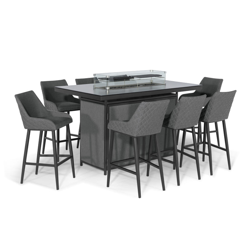 Aruba Outdoor Fabric 8 Seat Bar Set with Fire Pit Table - All Weather Fabric