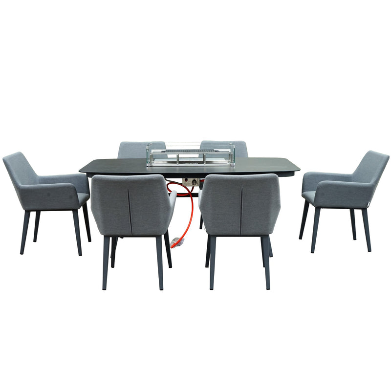 Sergio Outdoor 6 Seat Dining Set with Fire Pit Dining Table with Canister Cover- Waterproof Fabric