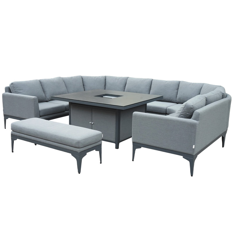 Sergio Outdoor U Shaped Furniture Set with Fire Pit Table - Waterproof Fabric