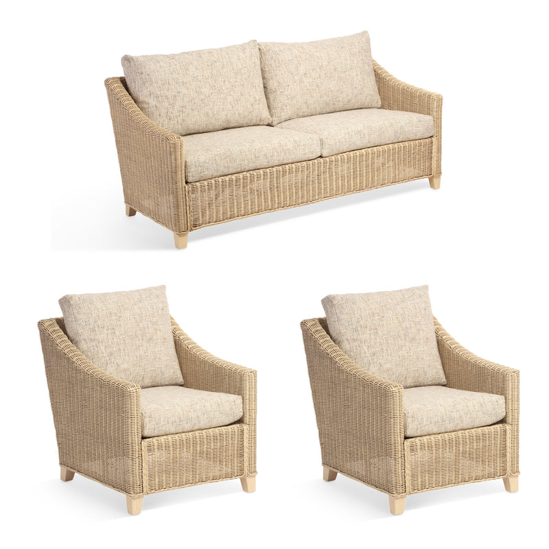 Dijon Natural Rattan 2 Seater Sofa 3pc Suite