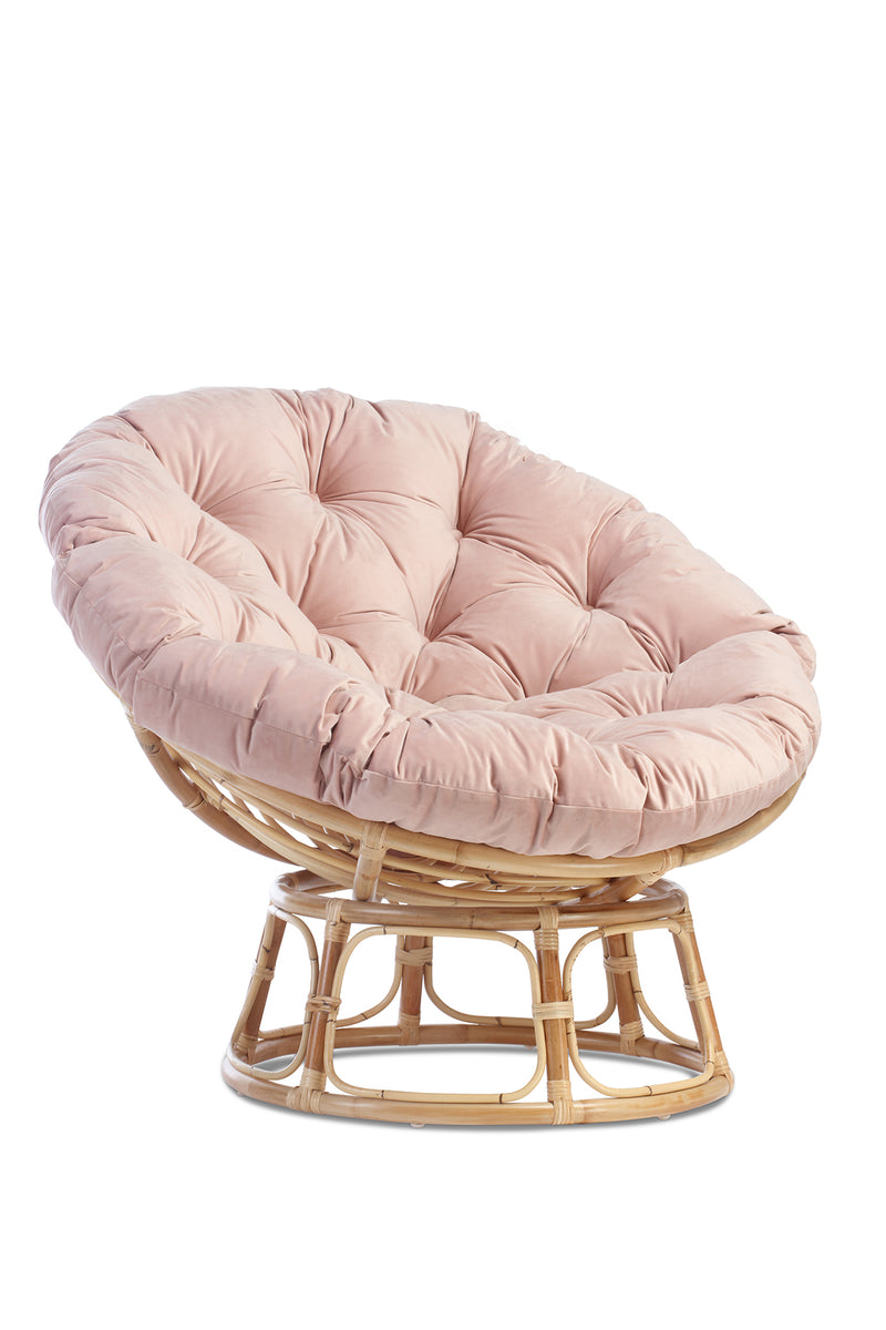 Natural Rattan Papasan Chair - Boucle Pink Powder