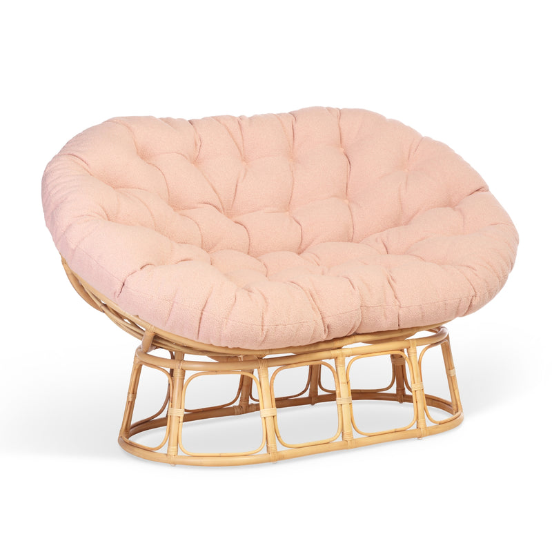 Natural Rattan Papasan Chair - Boucle Pink Powder