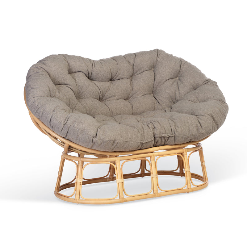 Natural Rattan Papasan Sofa with Latte Boucle Cushion