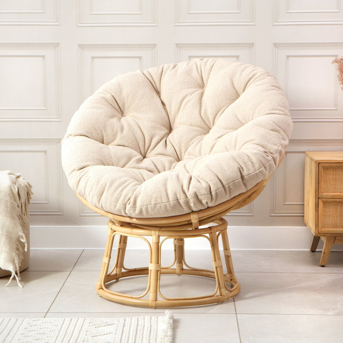 Natural Rattan Papasan Chair with Latte Boucle Cushion