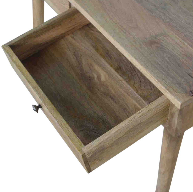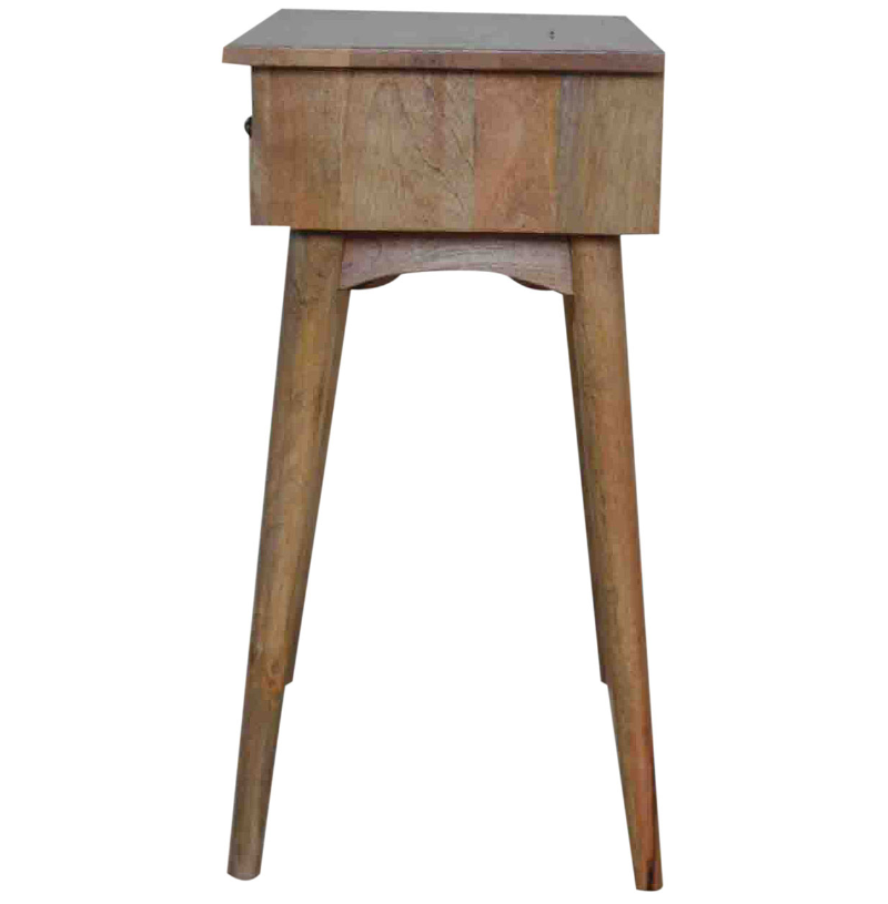 A simple & elegant charm is what this practical console table will provide. Suiting most interiors,, this 100% solid mango wood unit has been built with sustainably sourced timbers in a Nordic wood design, it has two drawers to help you keep your home organised and storing any small household objects. This has shiny knobs and has a fine oak-ish finish.