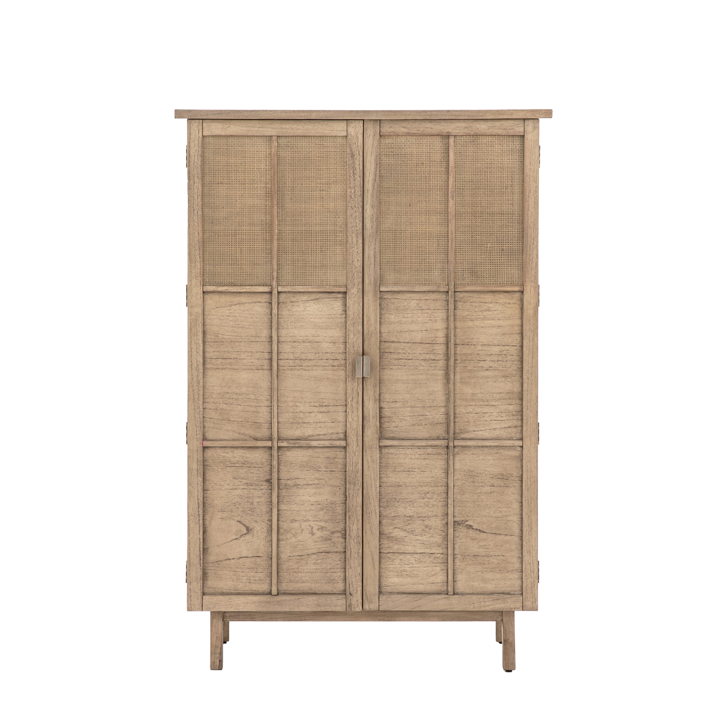 Developed with Japandi influences to give the ideal fusion of Japanese and Scandinavian design. The perfect range to add a touch of unique style to any interior, featuring a traditional lightly weathered finish with modern slatted detailing, cane panel inserts on some doors and brushed bronze handles. This two door cupboard features handwoven cane inset into the top section of the doors, paired with Mindy ash solids and veneers, in a soft natural colour. Also including a sideboard, media unit, coffee and console table, plus a practical supper table and unique slatted side table, this collection adds a touch of simplistic minimalisation to any interior space. Due to the handmade nature of this product colour variations may be present.
