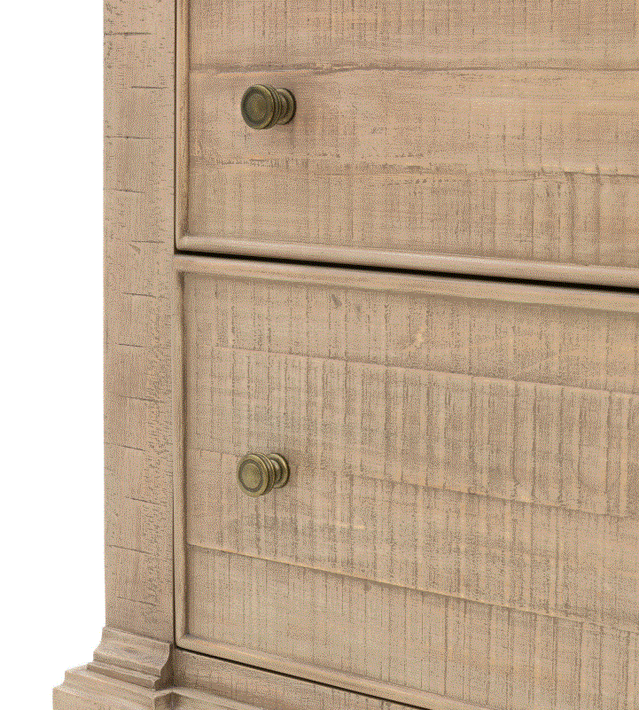 This 5 drawer chest is a charming and practical addition to any bedroom. Its weathered wood finish and simple design create a warm and inviting atmosphere. The five drawers provide ample storage space for clothing, linens, and other essentials. Perfect for adding a touch of rustic charm to your space.