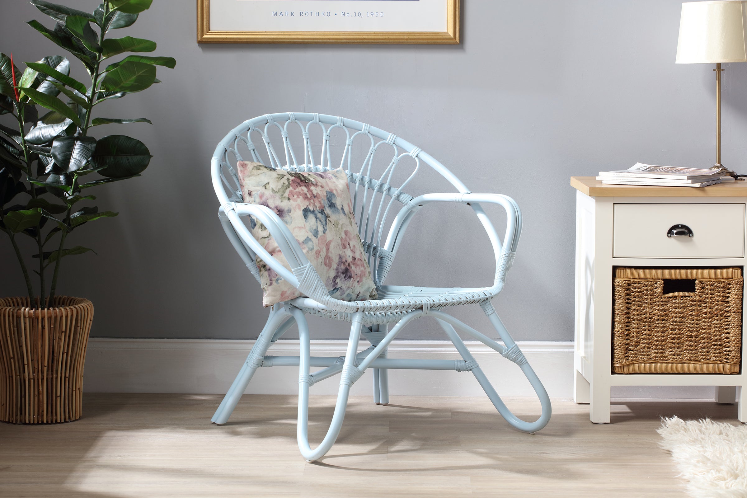 Providing stunning cane shapes, the Nordic Blue Rattan chair looks the part with its trendy curved front legs and fashionable back design. Hand-crafted for supreme quality, the chair is also fashioned with arms for added comfort.