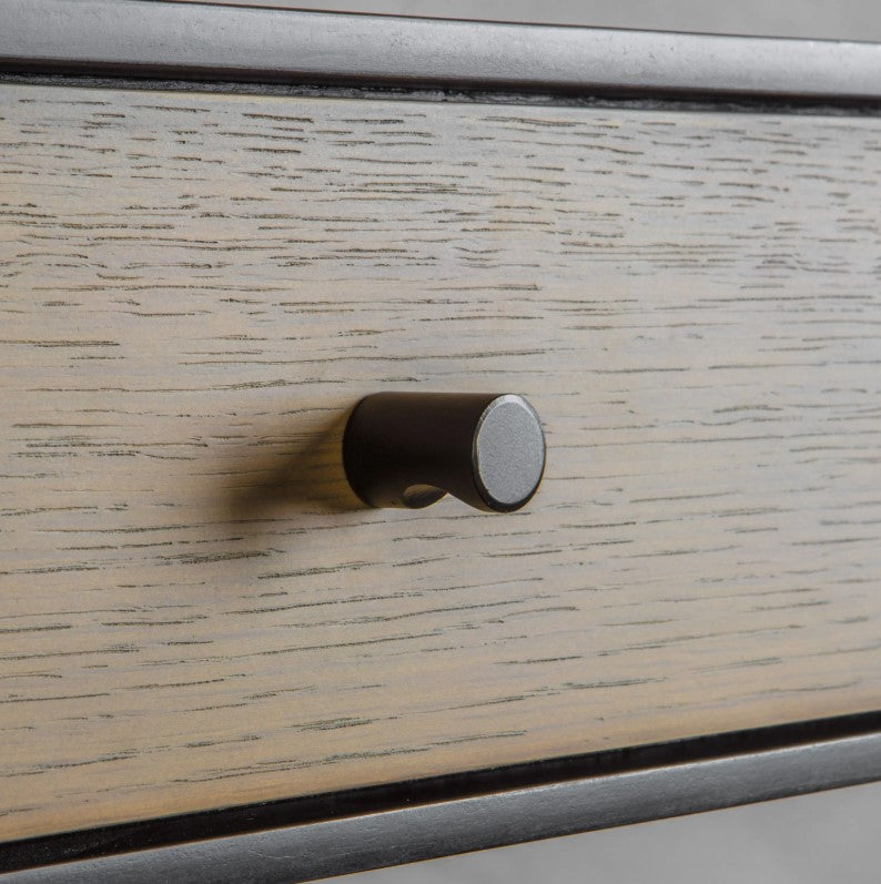 Stylish collection of Oak Veneer furniture, perfect for adding the finishing touch to your living space. Featuring a black Oak veneer body and white Oak veneer drawers and shelves, this collection is finished with black metal legs and handles.