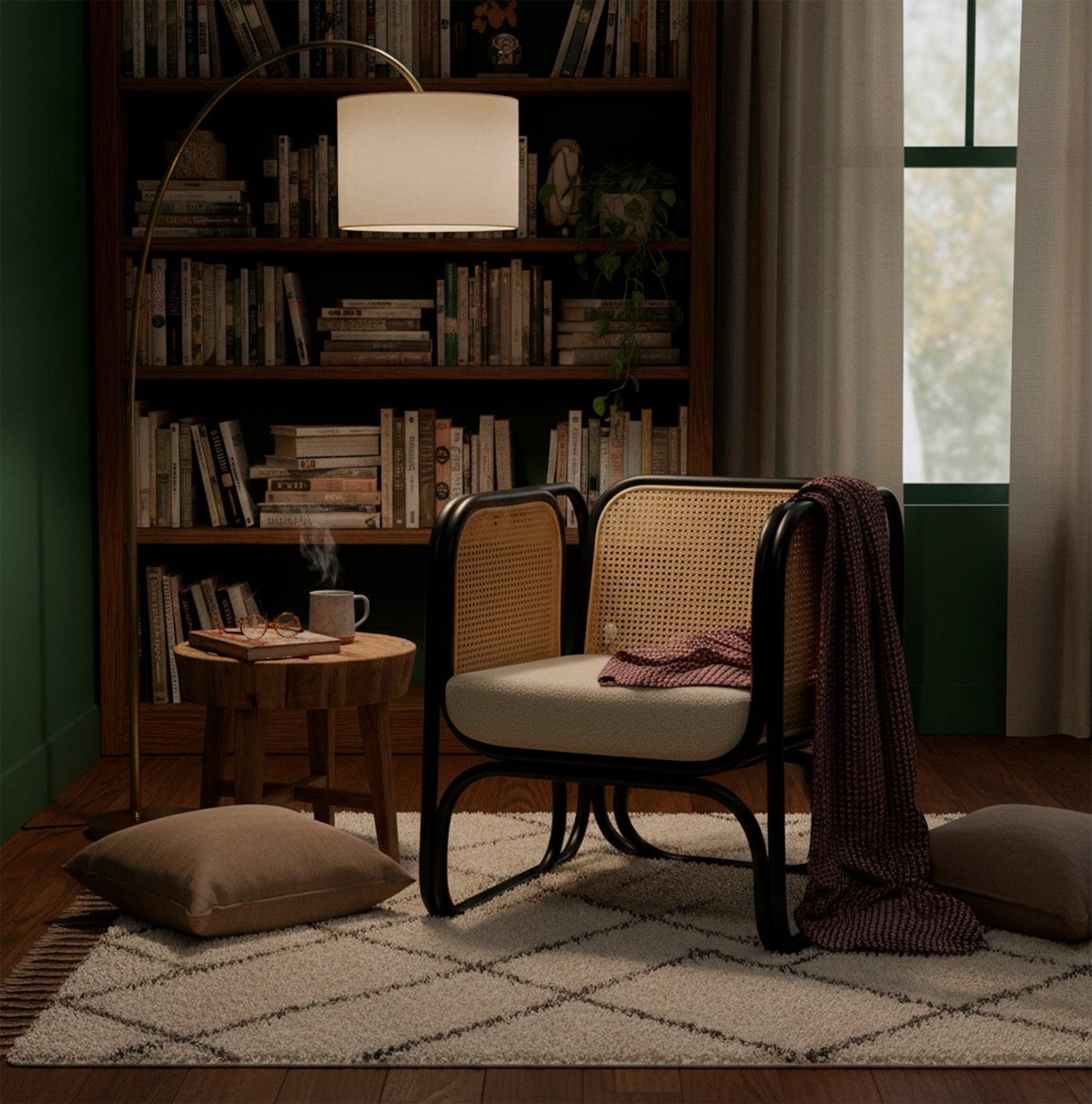 The Black Indoor Rattan Chair with Boucle Cushion seamlessly combines modern elegance with exceptional comfort, making it the perfect addition to any indoor space. Crafted with a sleek curved cane frame and sustainable natural rattan, this black rattan lounge chair is designed for both style and durability. Whether placed in your Bedroom Furniture or Boucle Chairs | Luxurious Comfort & Style collection, it enhances the aesthetic of your home.