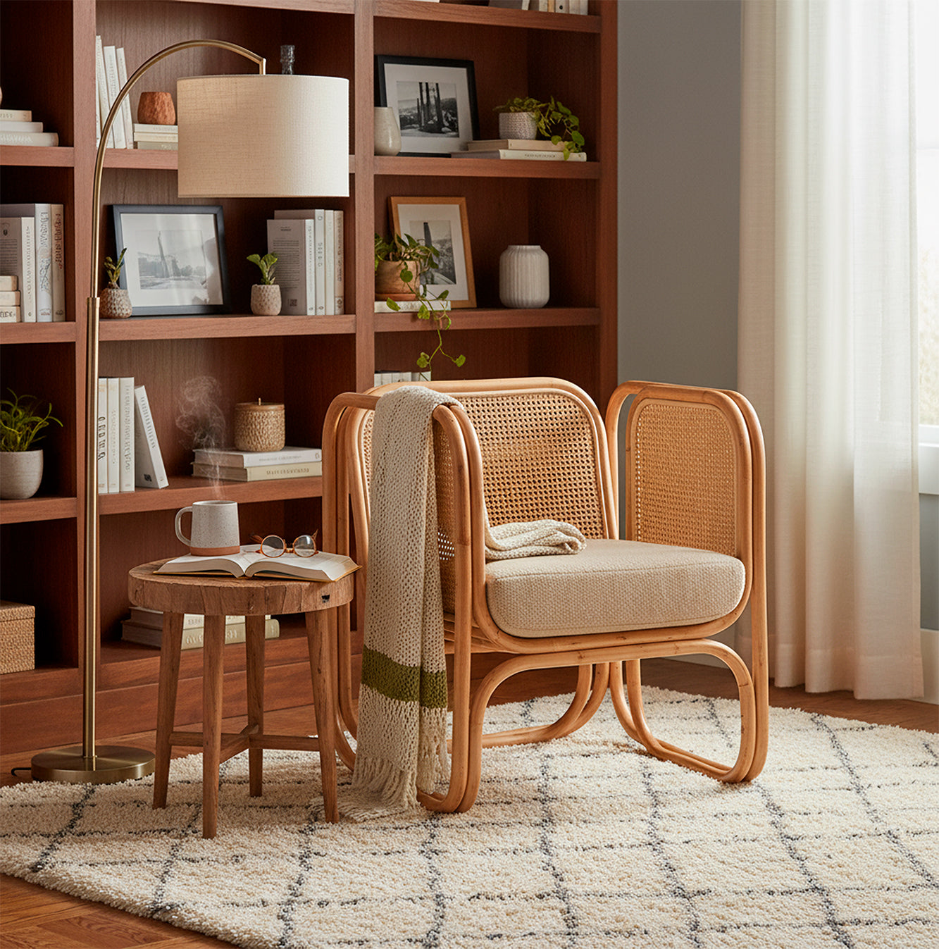 Transform your home with the elegant and comfortable Indoor Rattan Boucle Armchair from Desser Furniture, where superior craftsmanship meets contemporary design to elevate the aesthetic and comfort of your living spaces.