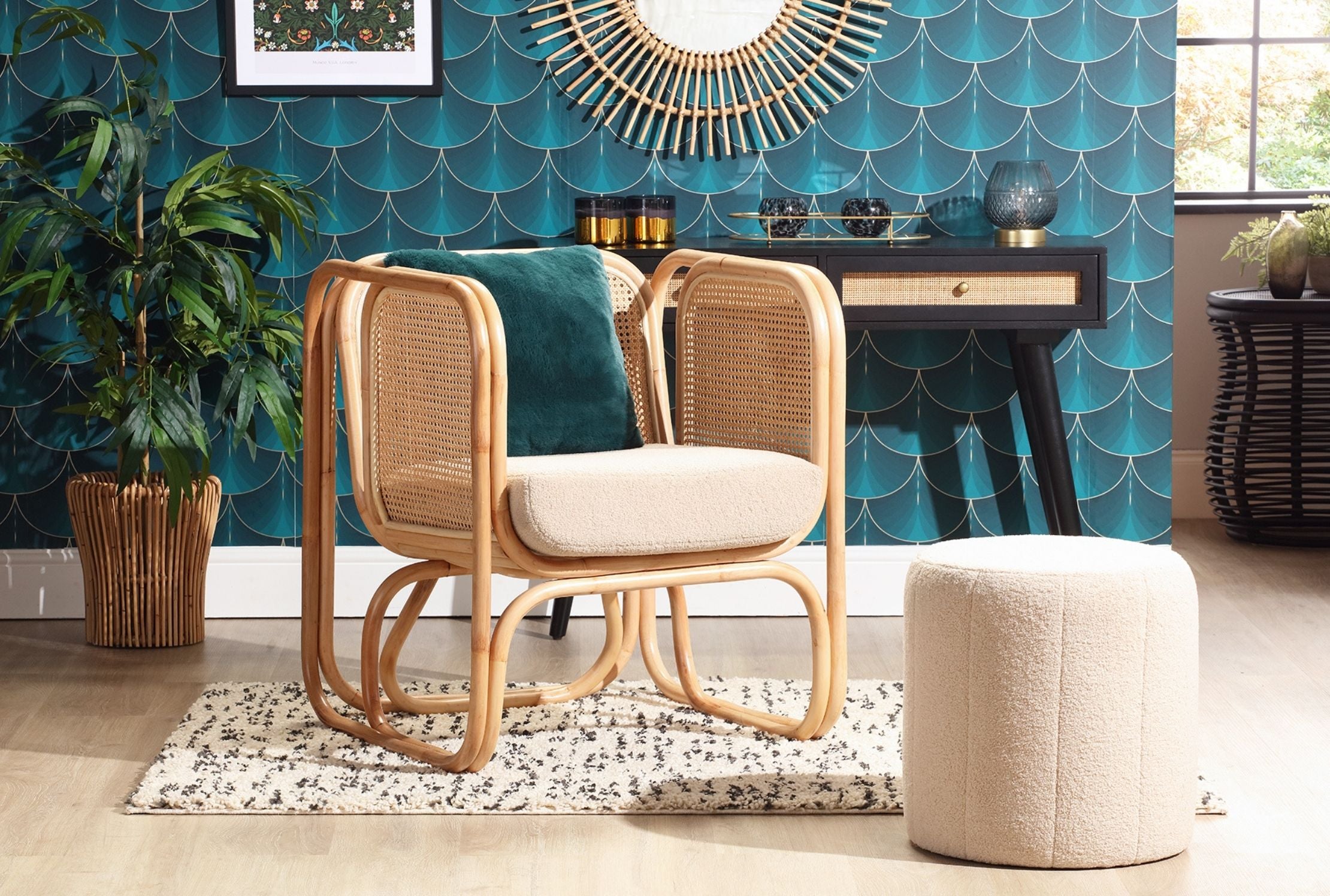 The boucle and rattan combination provides a sophisticated look that complements various interior styles. Whether your decor is modern, boho, or retro, this chair seamlessly integrates with your existing furnishings.