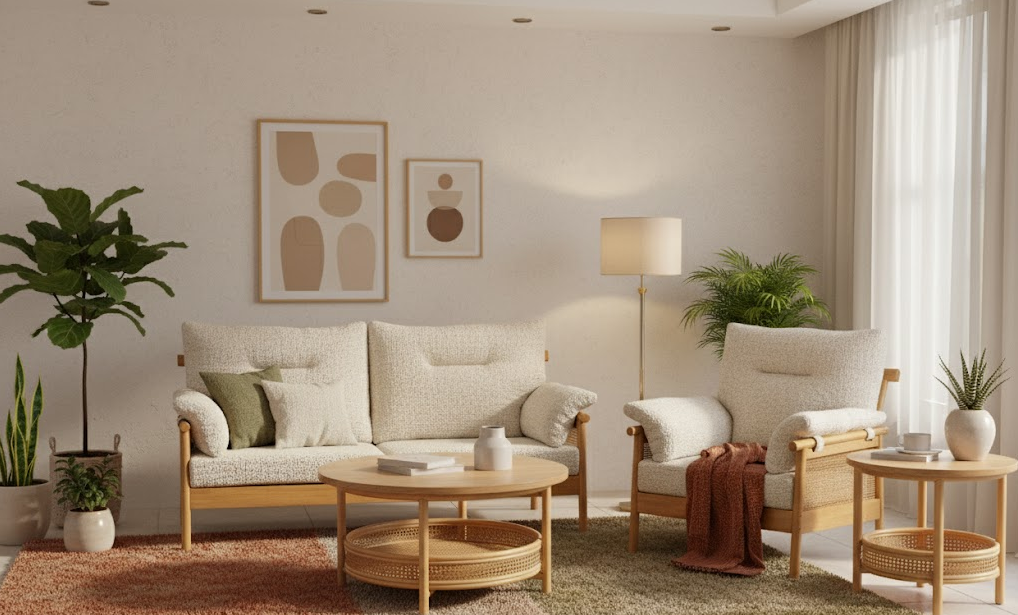 Transform your living space with a suite that combines modern elegance with artisanal detail. The rich natural texture of the Mindi wood and the sumptuous feel of the cushions imbue any room with warmth and refined style. This versatile suite is perfect for indoor settings and suitable for outdoor use in dry conditions, complementing contemporary interiors seamlessly.