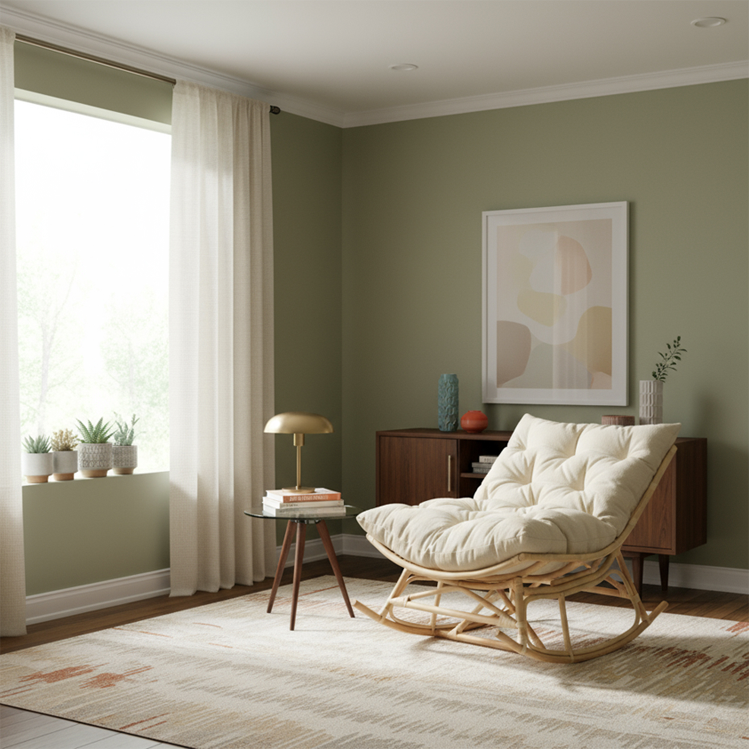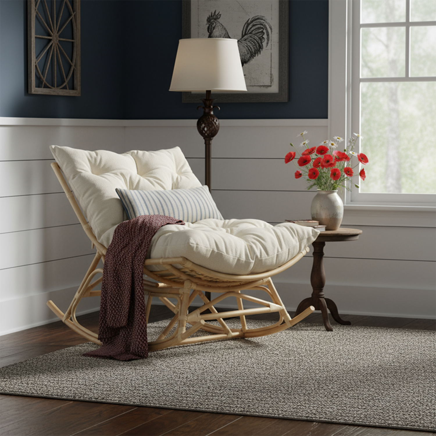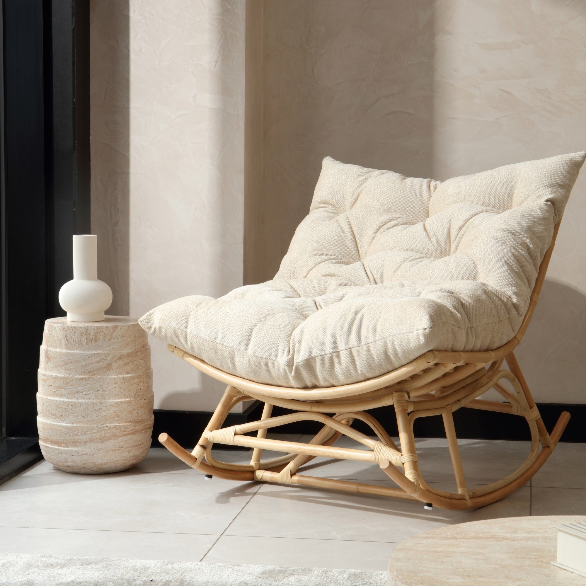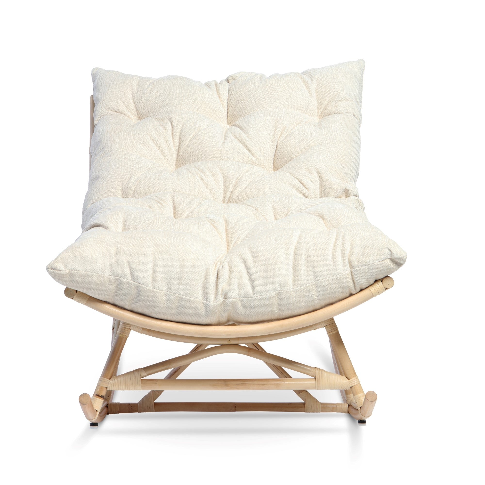 Natural Rattan Papasan Rocking Chair - Square Shape Country Beige Cushion