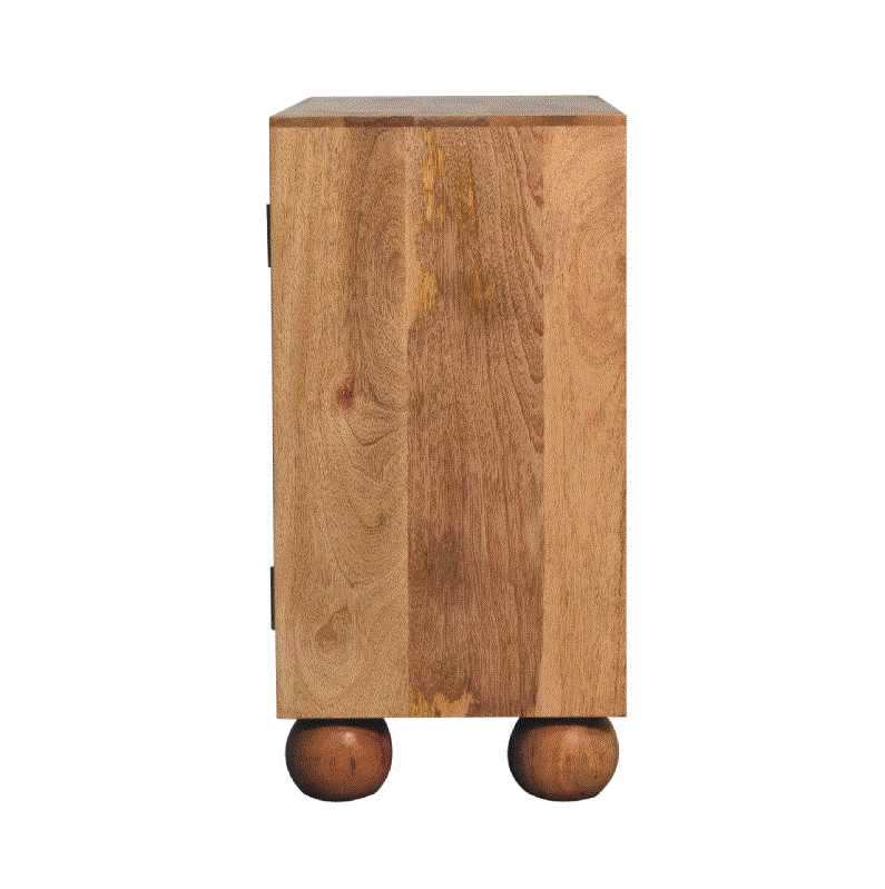 This stylish Nordic Rattan cabinet combines 2 arch-woven front doors which have a smooth oak-ish finish, the unit is constructed from 100% solid mango and features space inside perfect for storage as well as 2 shiny brass knobs and chunky ball feet. Make full use of this cabinet in the living room or partner it with the rest of the collection.