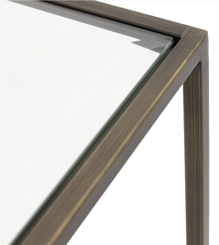 A sleek, engineered occasional collection, featuring a slender metal frame with an inlaid bevelled clear glass table top. These stunning glass pieces will add a touch of sophistication to any styled interior. Now available in 3 finishes, champagne, bronze and silver, this elegant collection sits comfortably in all interiors