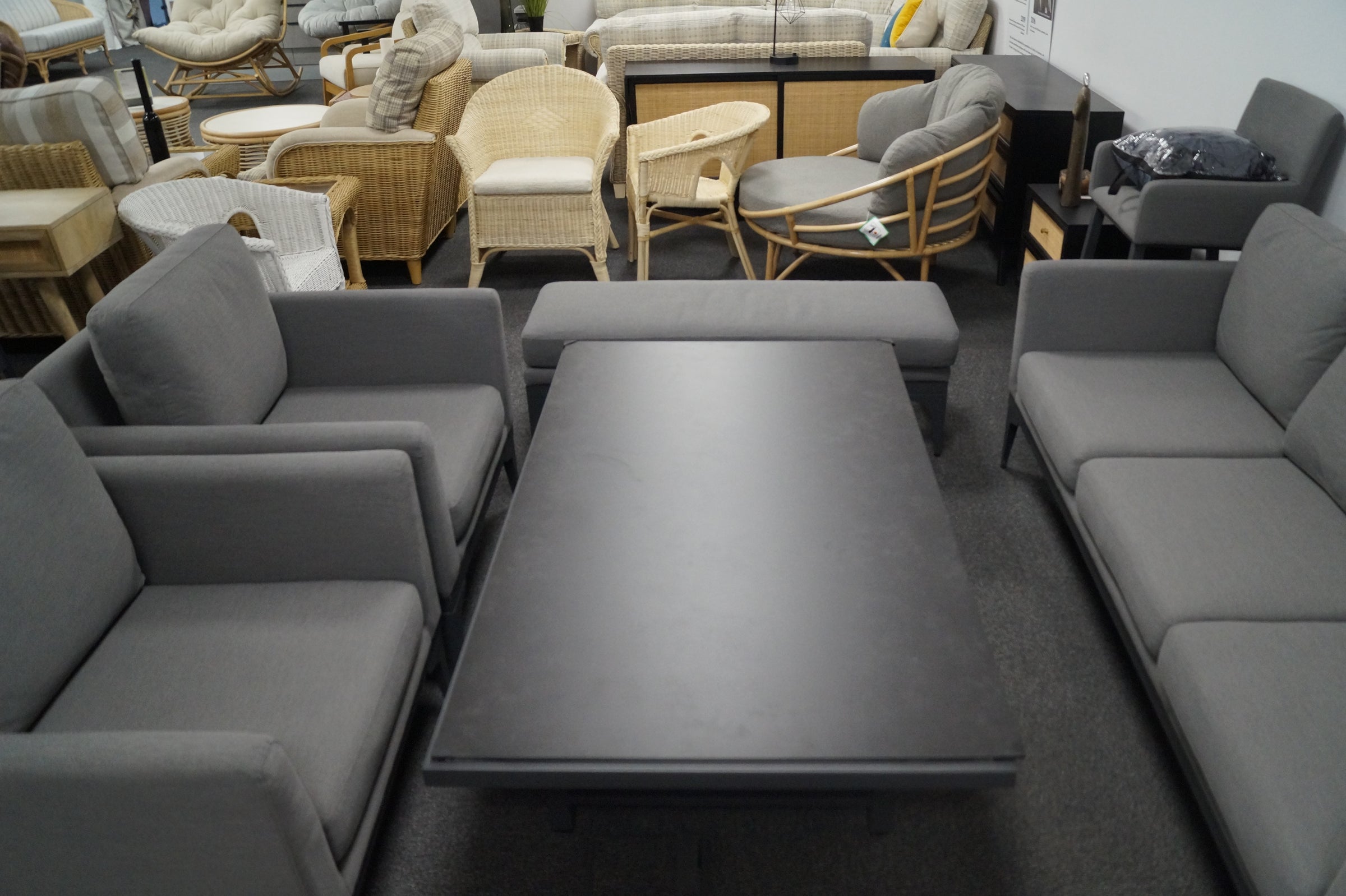 - Adjustable Table – Allows flexible configurations for lounging or dining.
