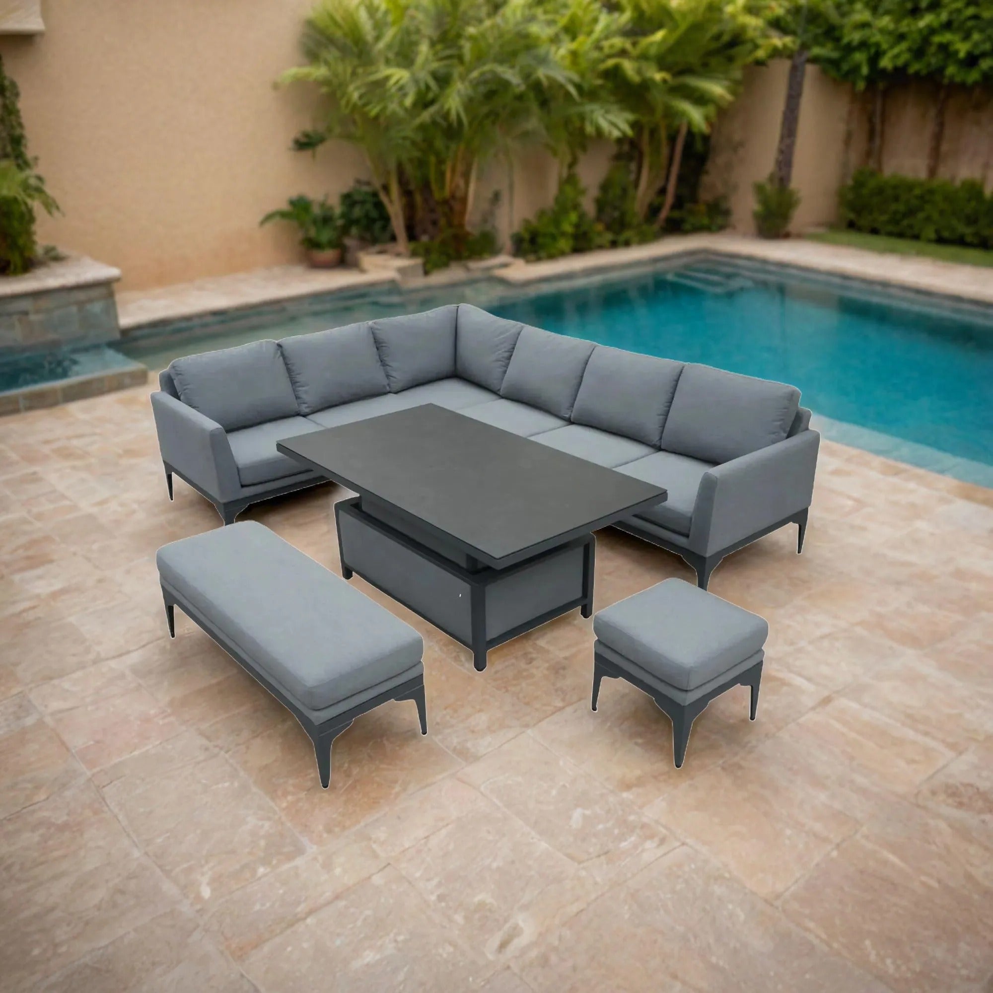 Sergio Outdoor Corner Sofa Set with Adjustable Table - Waterproof Fabric