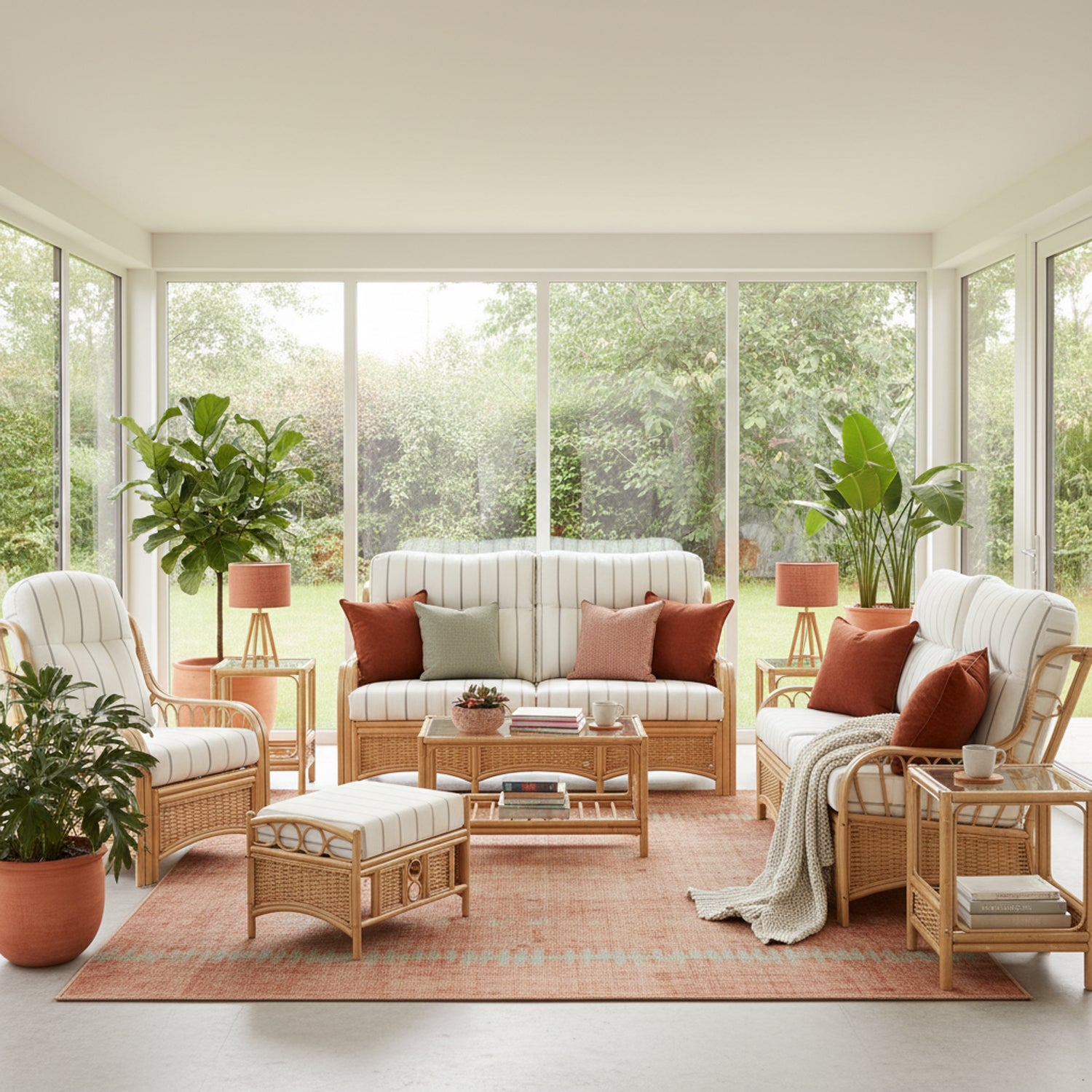 Experience the refined elegance of the Vale Light Oak 3 Seater Suite, where sustainable craftsmanship meets timeless design. Handcrafted from sustainably farmed light oak rattan, this compact yet luxurious set is perfect for preserving charm in your conservatory, living room, summer house or kitchen. Discover the ideal means of purchasing the Vale Light Oak 3 Seater Suite and enhance your interiors with exquisite British design.